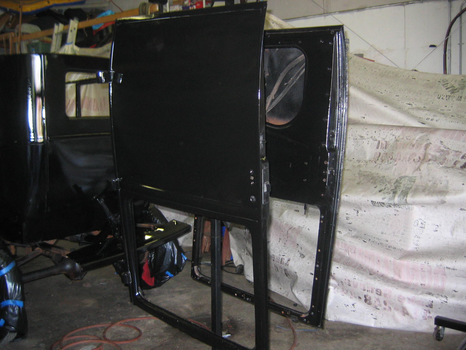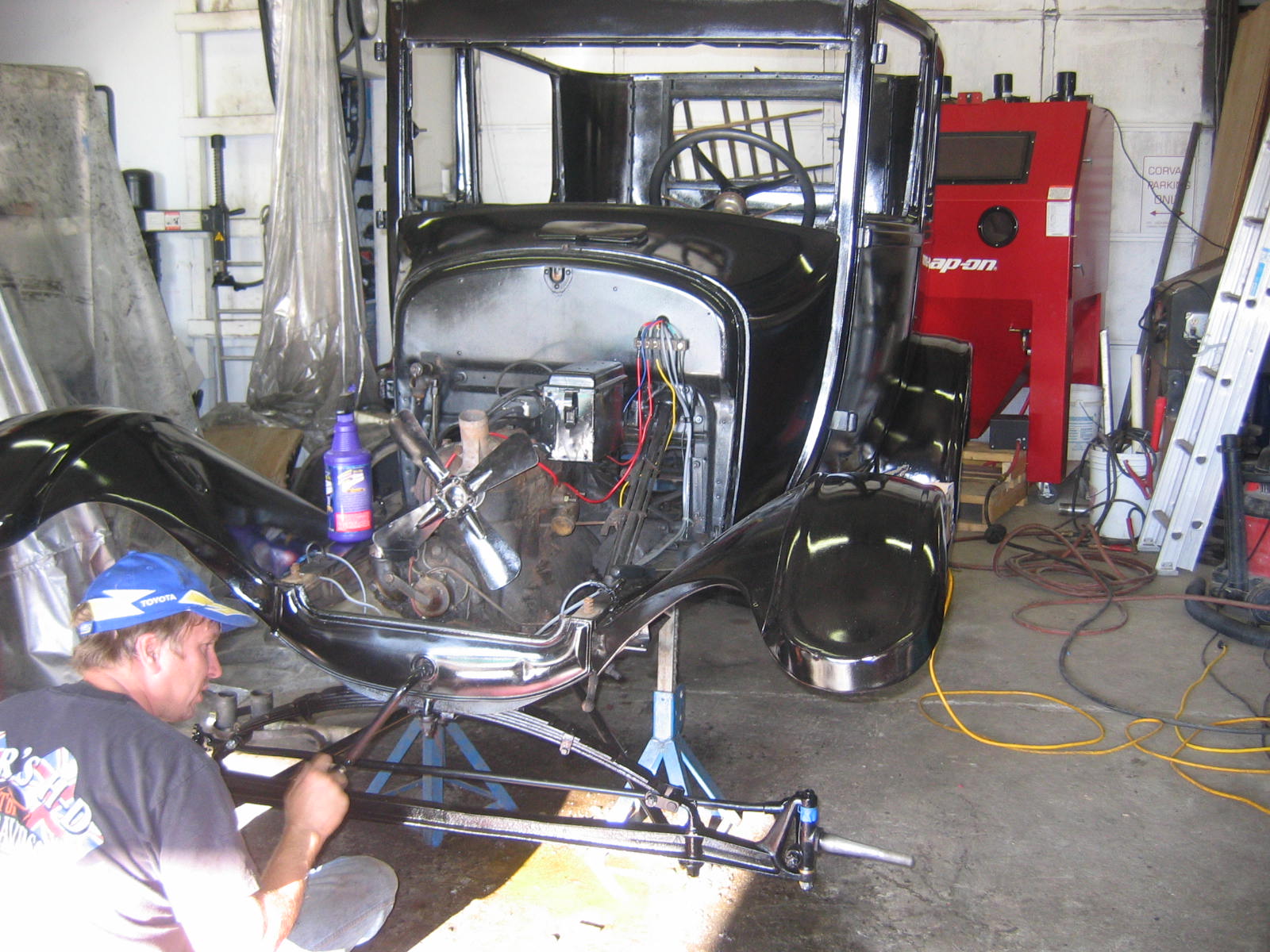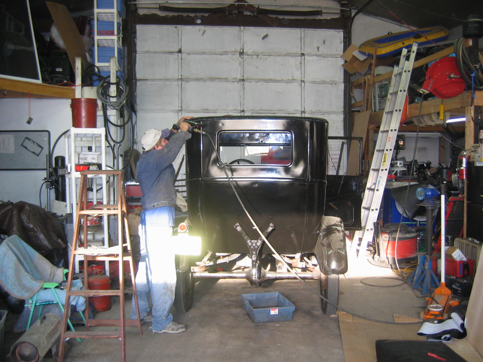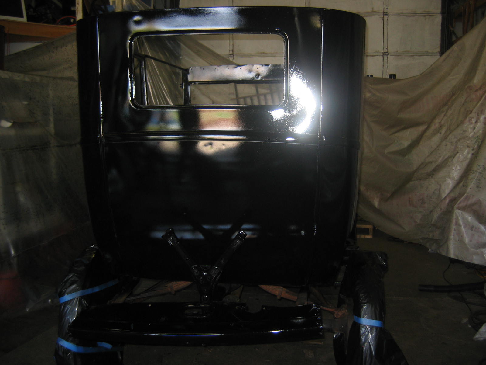Its not perfect but did Mr. Ford have it perfect? I don't think so... he used a hose to apply paint, we used a spray gun. The paint used was implement- or tractor paint. Who's going to know except us? Black is black is black. Thanks to Kevin and Dana Olson for always helping out! We love you guys.