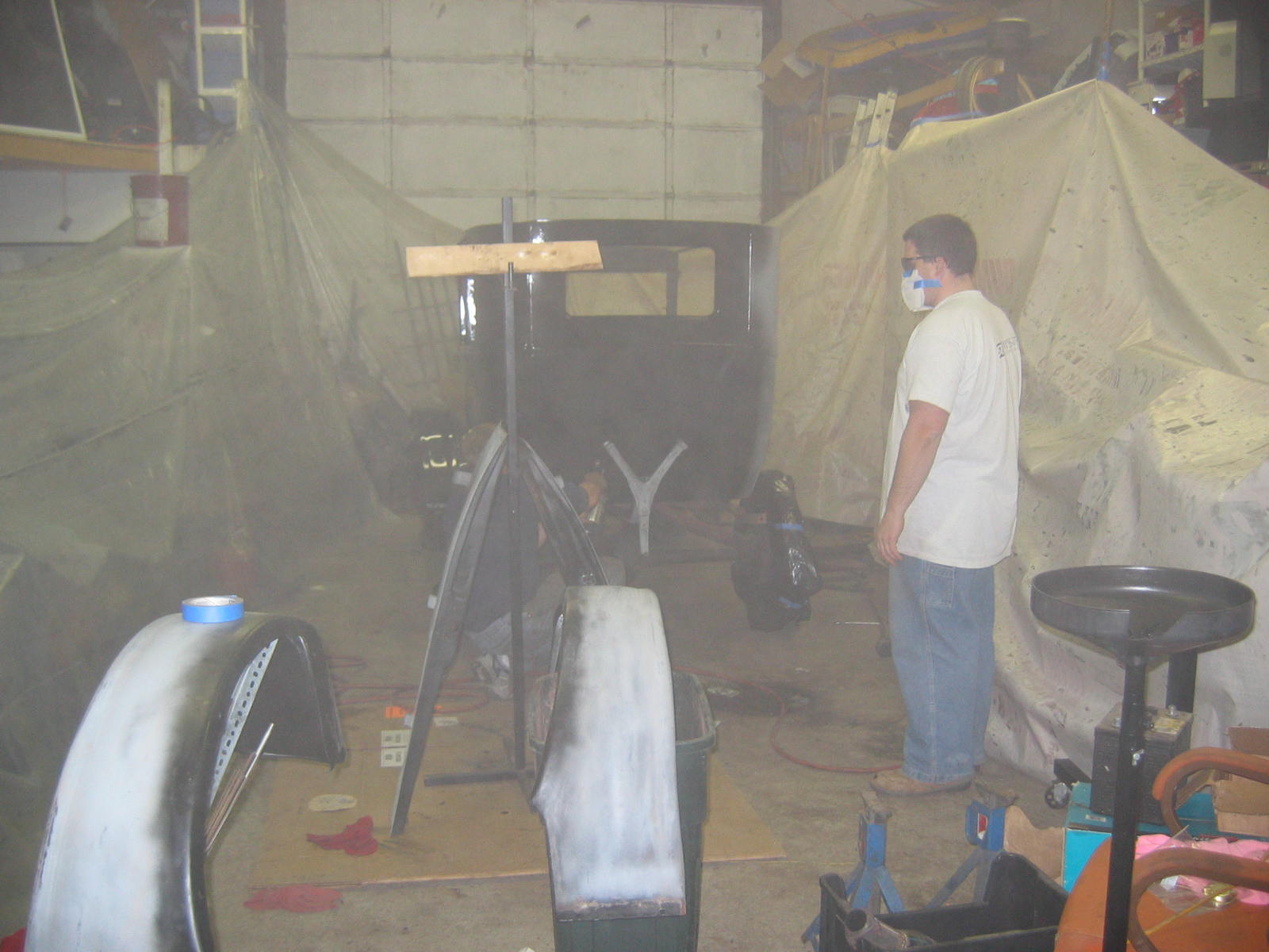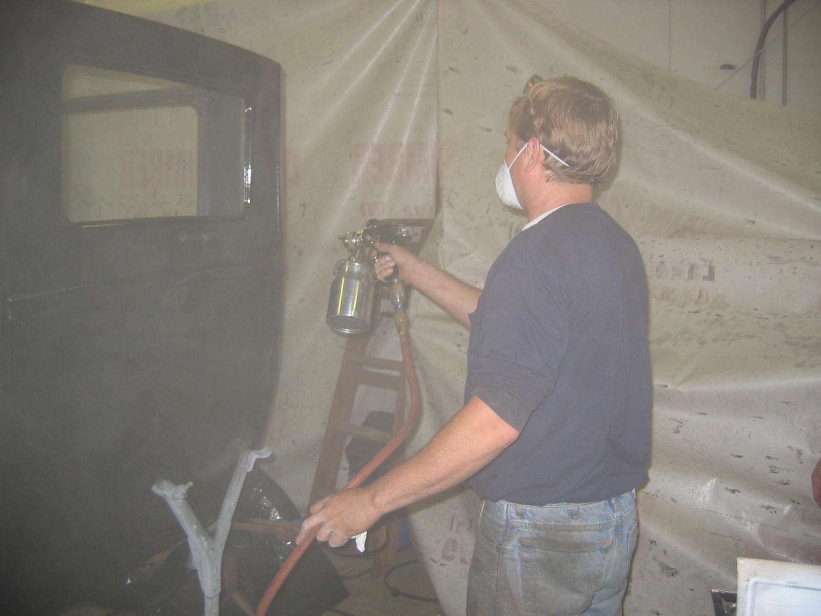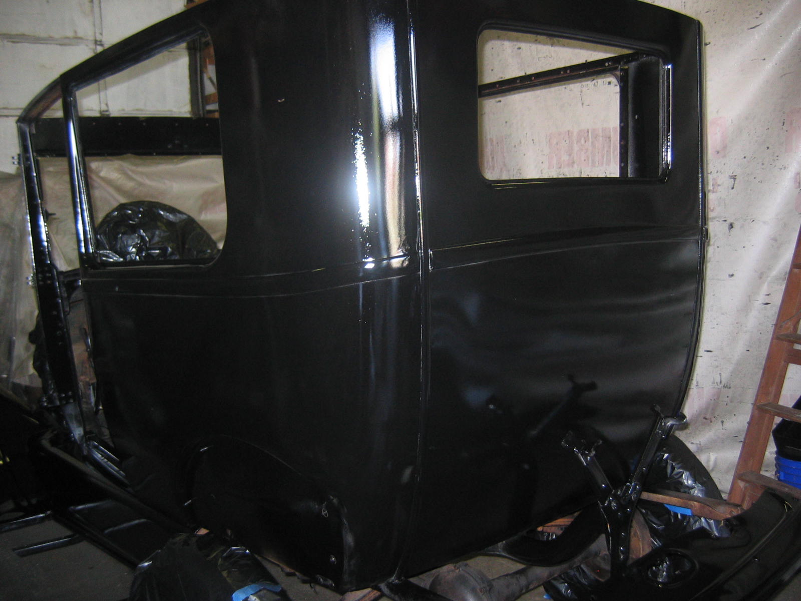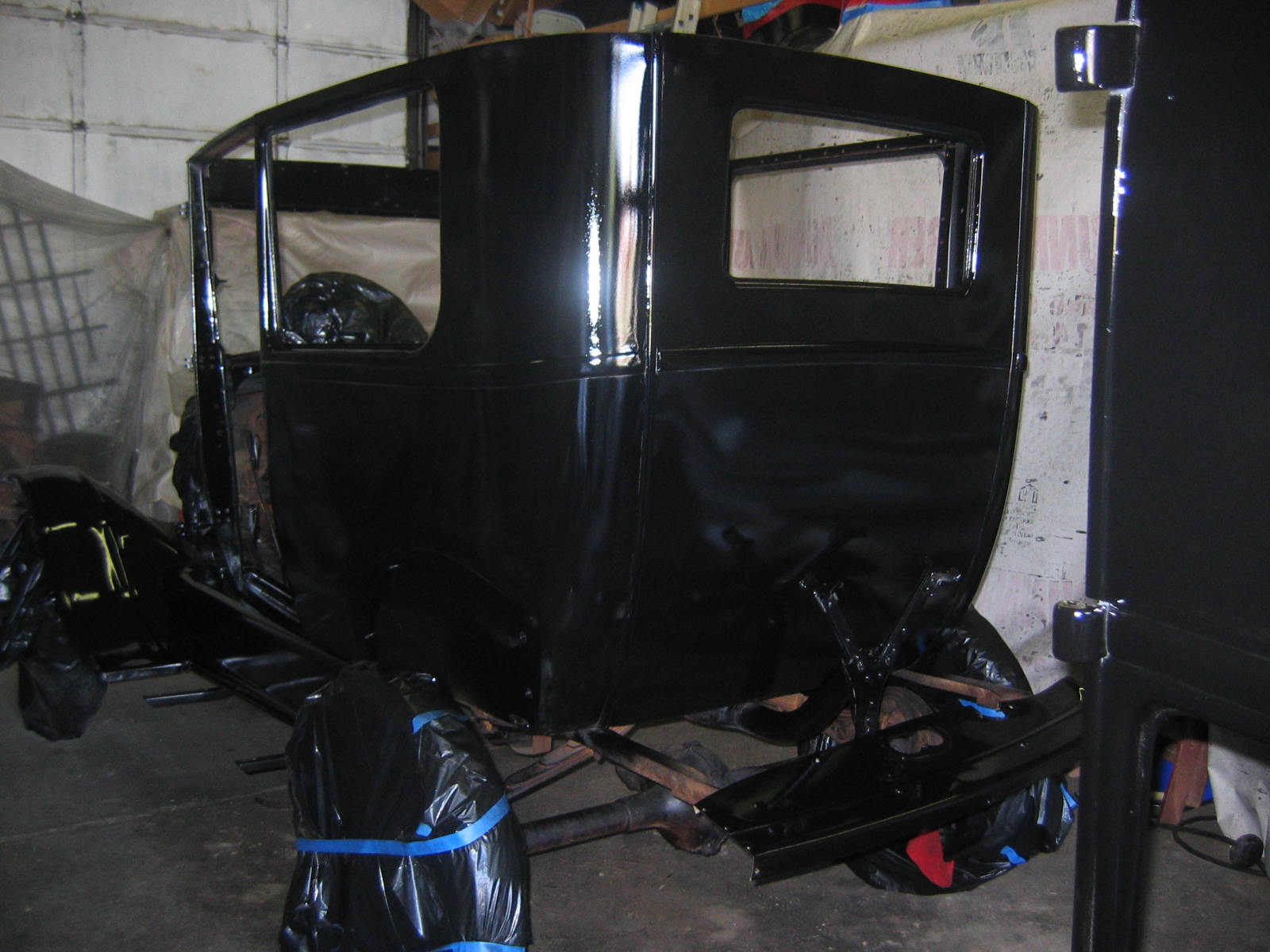 Its not perfect but did Mr. Ford have it perfect? I don't think so... he used a hose to apply paint, we used a spray gun. The paint used was implement- or tractor paint. Who's going to know except us? Black is black is black. Thanks to Kevin and Dana Olson for always helping out! We love you guys.