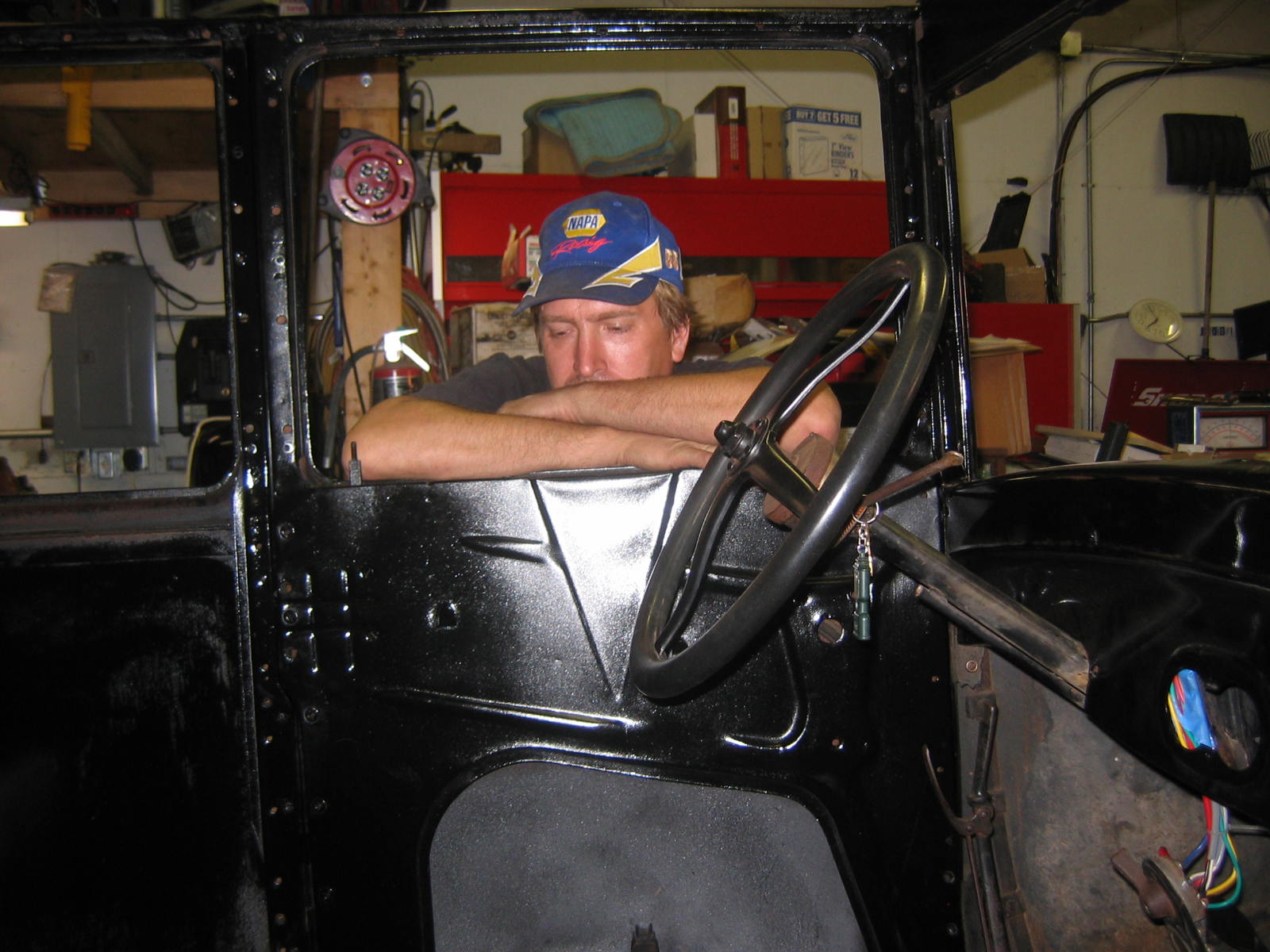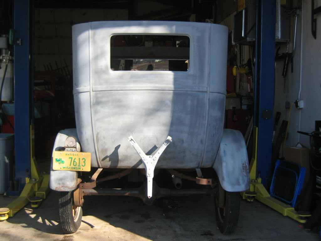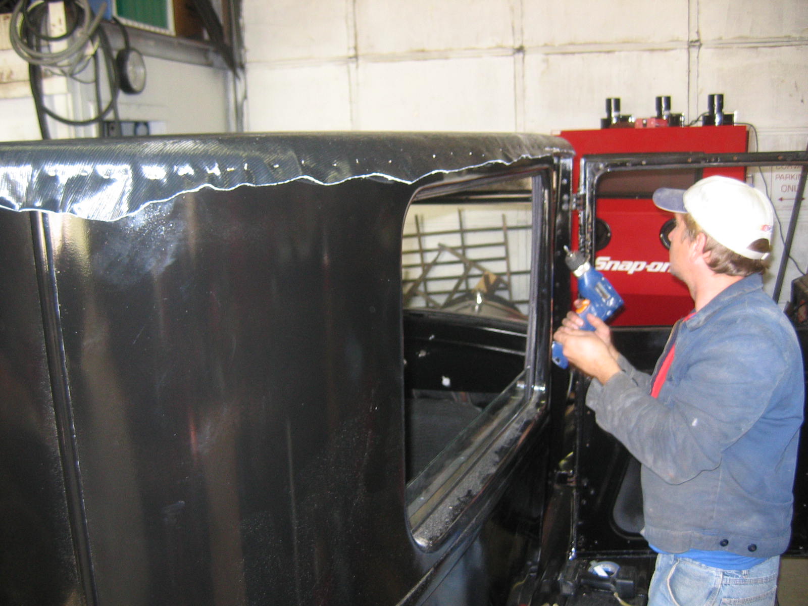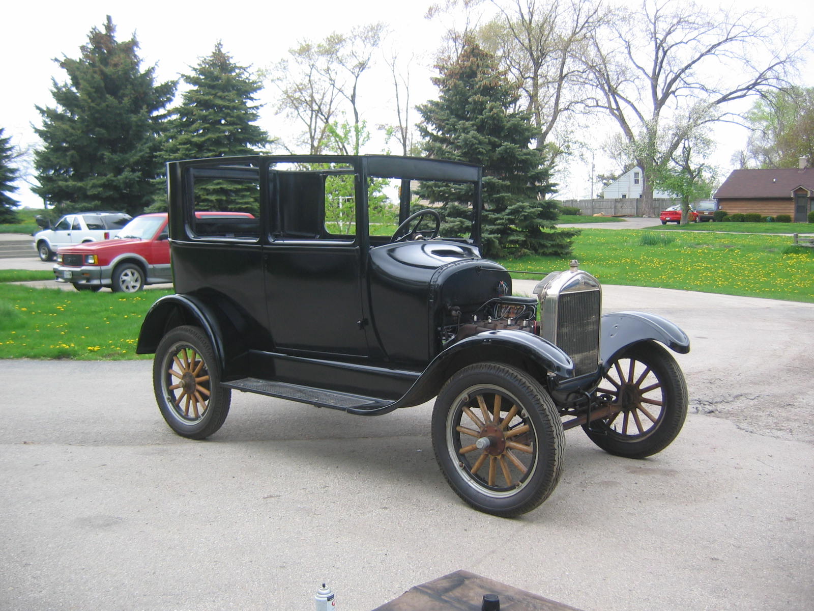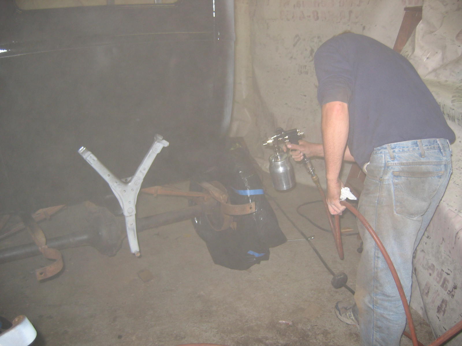Its not perfect but did Mr. Ford have it perfect? I don't think so... he used a hose to apply paint, we used a spray gun. The paint used was implement- or tractor paint. Who's going to know except us? Black is black is black. Thanks to Kevin and Dana Olson for always helping out! We love you guys.