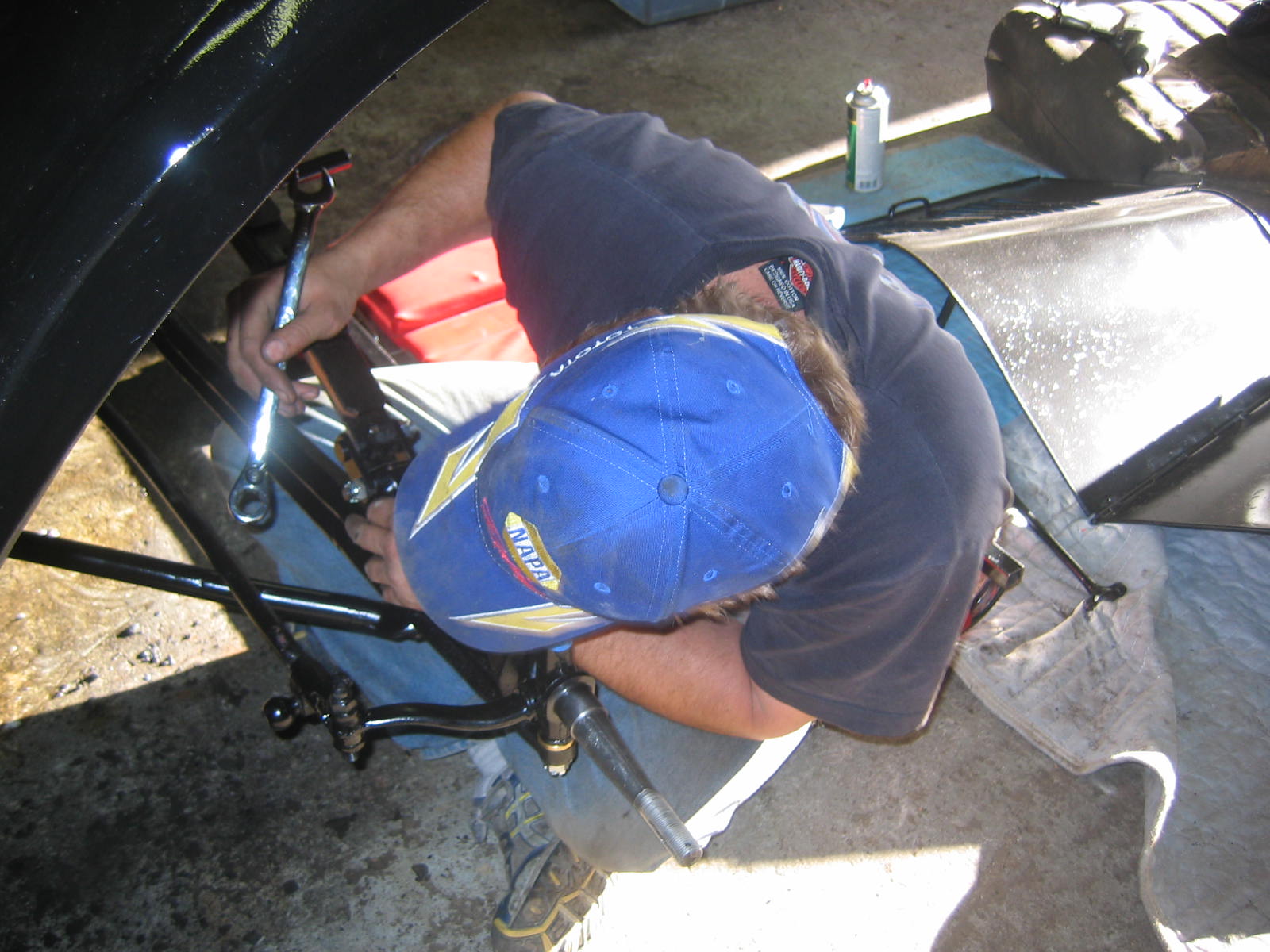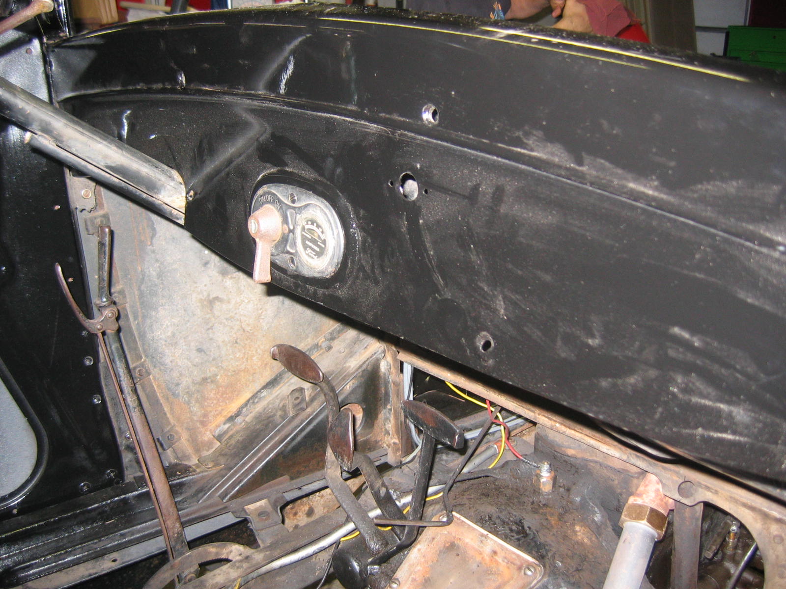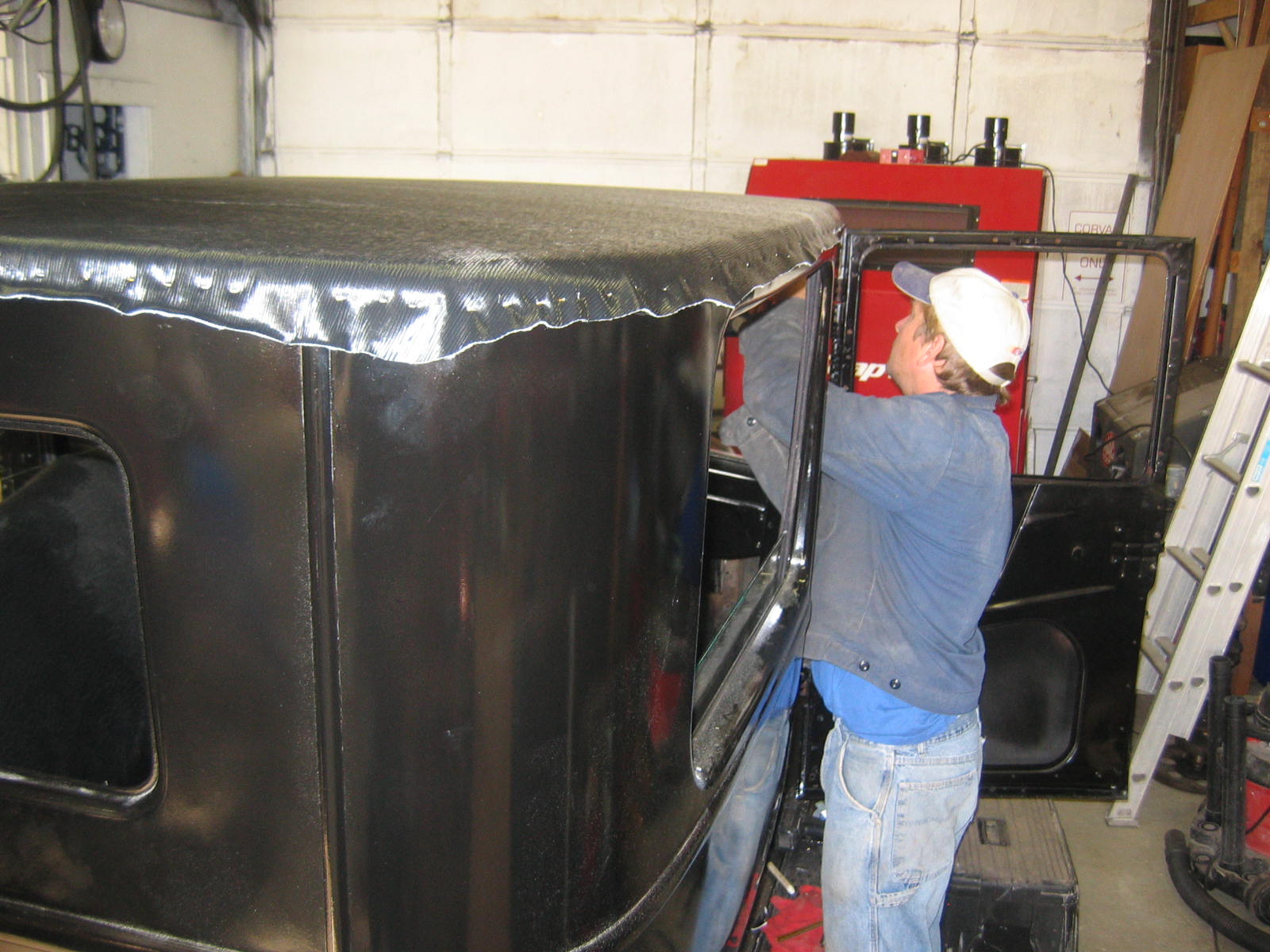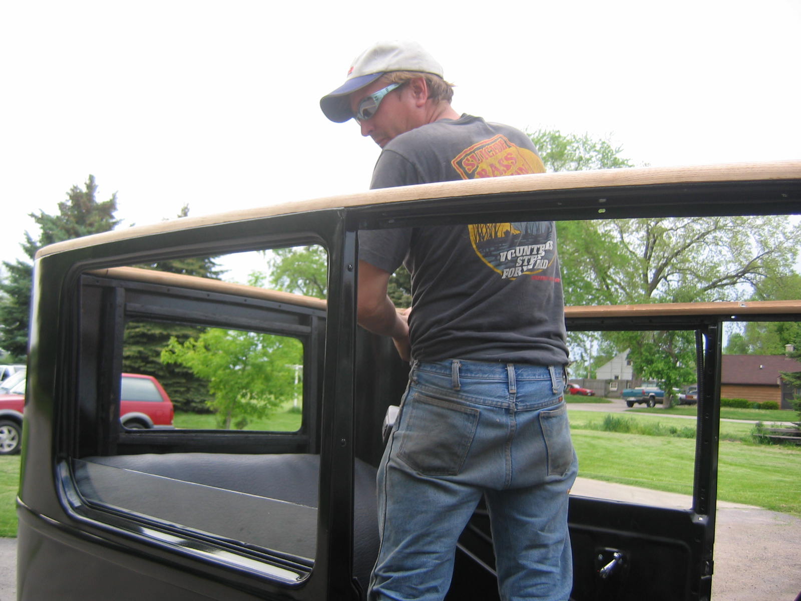 Its not perfect but did Mr. Ford have it perfect? I don't think so... he used a hose to apply paint, we used a spray gun. The paint used was implement- or tractor paint. Who's going to know except us? Black is black is black. Thanks to Kevin and Dana Olson for always helping out! We love you guys.