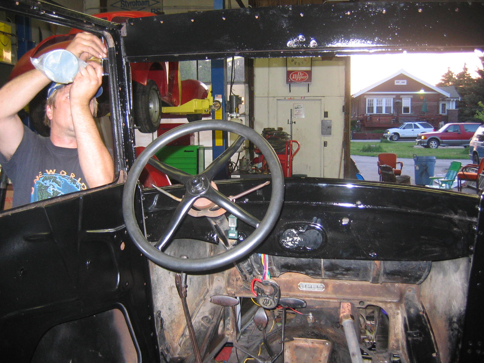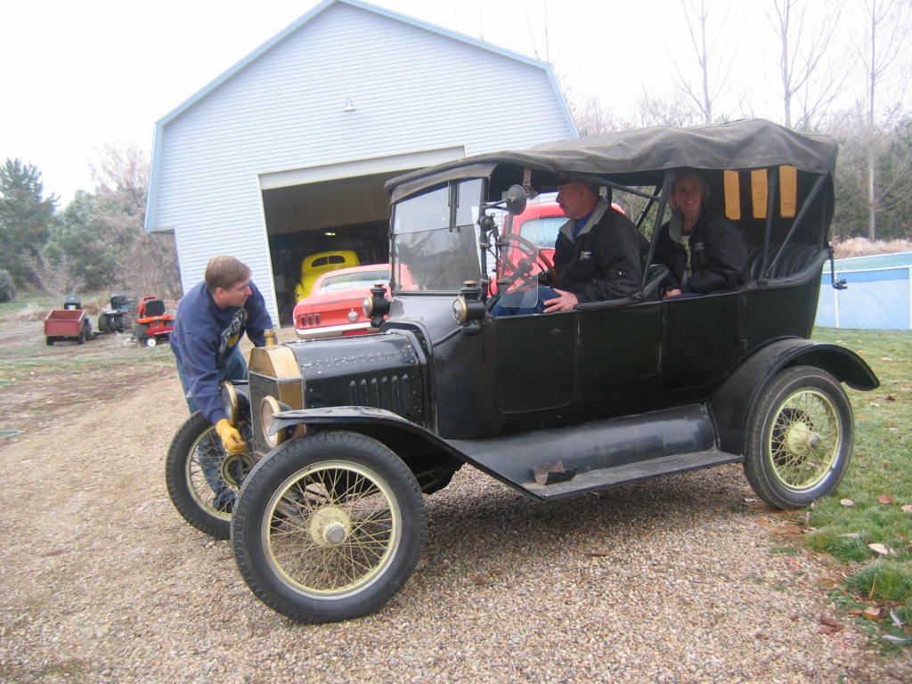 Sunday, March 11th. What a beautiful day to take a ride in a T. We tooled around Sturtevant and Mt. Pleasant and people just waved and gawked and even got a thumbs up a few times. Needless to say, after all this talk about t's and taking one through the McDonalds drive through (a first for them and us) we were truly inspired to work on ours... See our photos and video below. Click on the photos to enlarge.