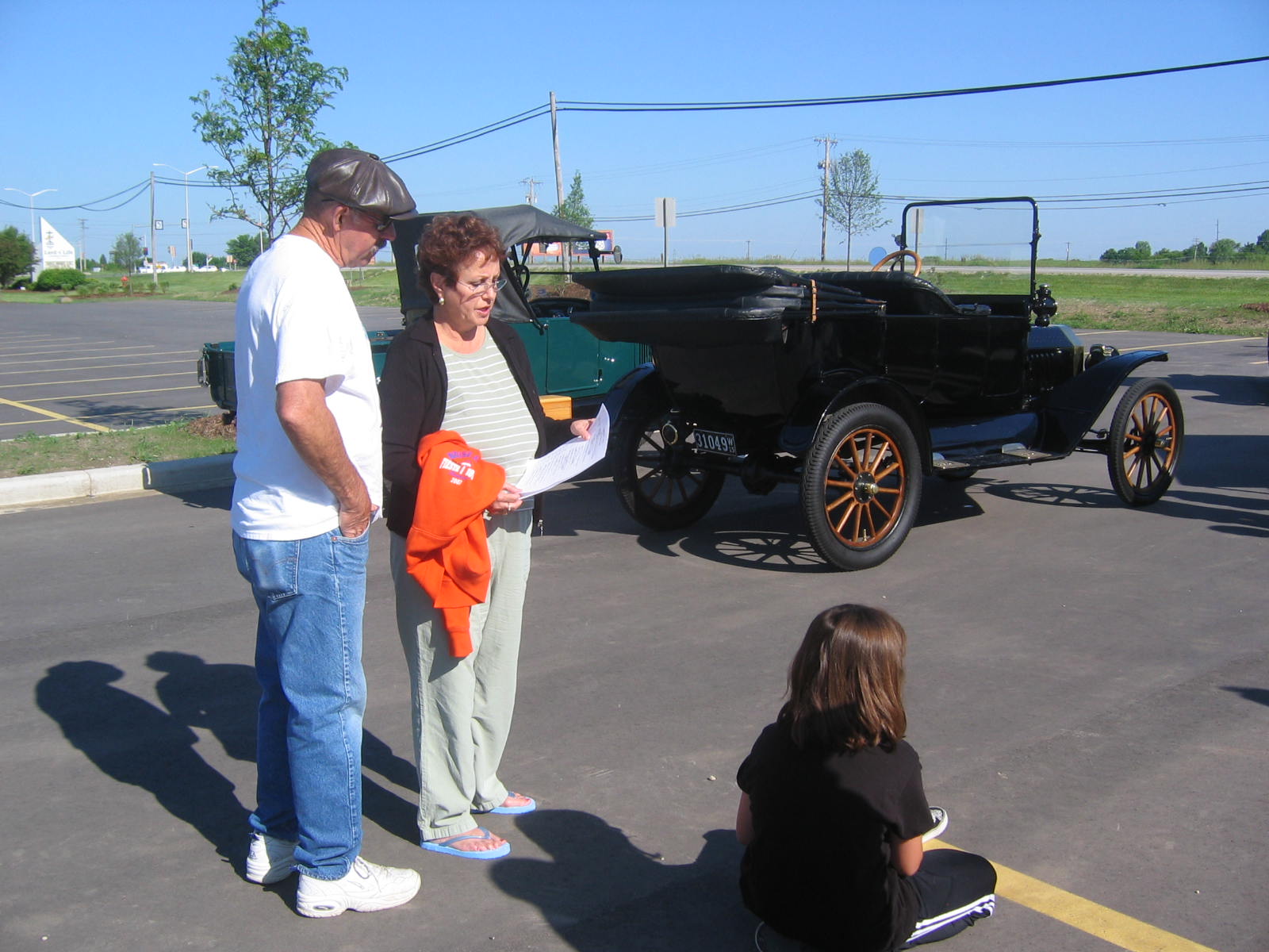 It never ceases to amaze us how many people appreciate old cars. Each time we go somewhere and return to our Toby, there's always a crowd waiting to ask questions about her. At our ballroom dance lesson Tuesday night, as I peaked out the window to make sure everything was okay, there were people waiting outside for us to finish so they could talk about her. Then a Saturday shopping trip to Farm and Fleet brought out some admirers once again. Dave and I get such a kick out of driving Toby because she brings people together. Every single time we take her out we are greeted with smiles, waves, honking and thumbs up! Dave has the cutest look of contentment on his face as he waves to people, he's so proud. She's definitely a car that unites people and we are truly happy about that. The pictures below represent her first showing at the local McDonald's car show. We had many people asking all sorts of different questions at the car show...from "how old is it" to "how do you drive this thing?" Very cool for these first timers (us and Toby). Needless to say we'll be showing her again in the near future. Oh yeah, and we got the roof put on- a job well done by Dave and his dedication. It looks awesome!